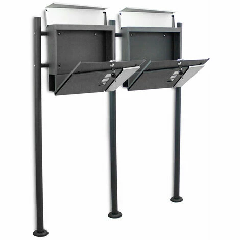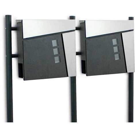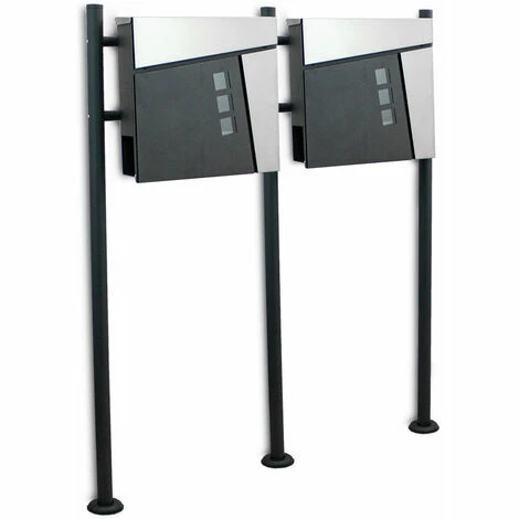 – Design Doppel Standbriefkasten Pulverbeschichtet mit Edelstahl Klappe