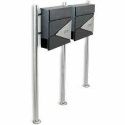 – Design Doppel Stand Briefkasten pulverbeschichtet mit Edelstahl Ständern